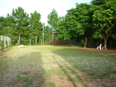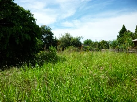 Uma visão: fotografia tirada da casa para frente. Plantamos 300 metros de grama mas como não foi possível cuidar, o mato tomou conta e matou quase tudo.