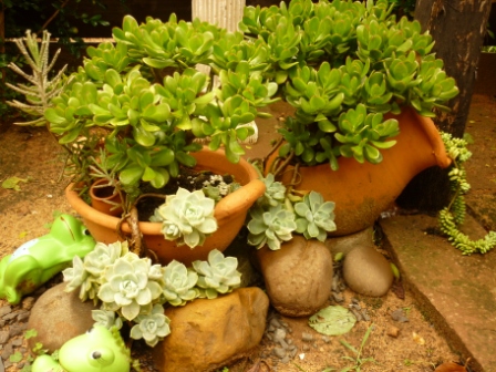Outro tipo de Crássula mini arbusto com Echevéria conhecida como Rosa de Pedra e Sedum Conhecida como Dedinho de Moça.