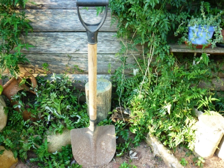 Famosa pá de corte. Obs: Em alguns lugares pessoas usam até hoje banha para conservação de todo o tipo de utensílio da roça; pois a tendência desse material exposto é enferrujar.